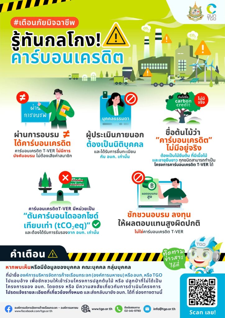หากท่านสนใจทำคาร์บอนเครดิต ขอให้ติดต่อ อบก. เท่านั้น เพื่อรับข้อมูลที่ถูกต้องและเชื่อถือได้