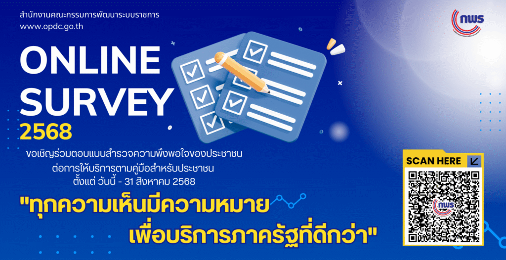 ข่าวประชาสัมพันธ์ขอเชิญร่วมตอบแบบสำรวจความพึงพอใจของประชาชนต่อการให้บริการของหน่วยงานของรัฐ ปี พ.ศ. 2568 admin / 4 กันยายน 2025 สำนักงาน ก.พ.ร. ขอเช